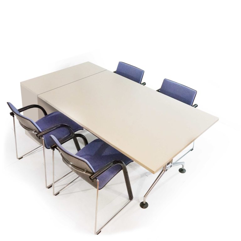 Die Tischlänge kann variabel bestellt werden – für 2 bis 8 Personen. Der Bildschirm ist ca. 1 Meter breit (43") und von der Größe völlig ausreichend für die Teilnehmer am Tisch. Das Bildschirmboard lässt sich mit modernster Medientechnik ausstatten (Video, und Soundsystem).