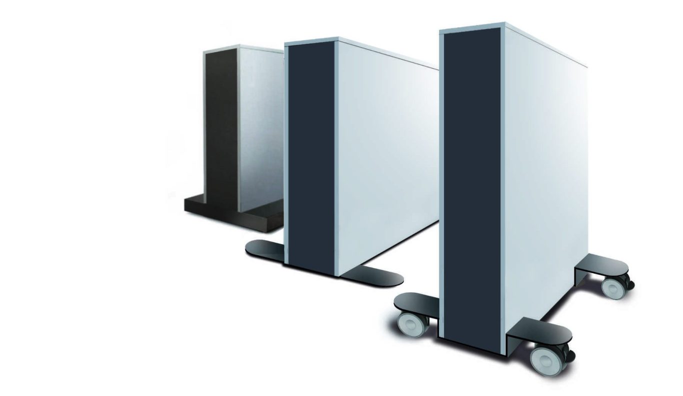 Das Bildschirmboard können Sie mit Roll-Sockel, mit Kufen oder mit sichtbaren Rollen erhalten
